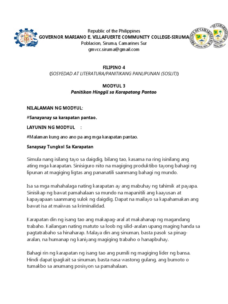 Edukasyon Sa Pagpapakatao 9 Karapatan At Tungkulin
