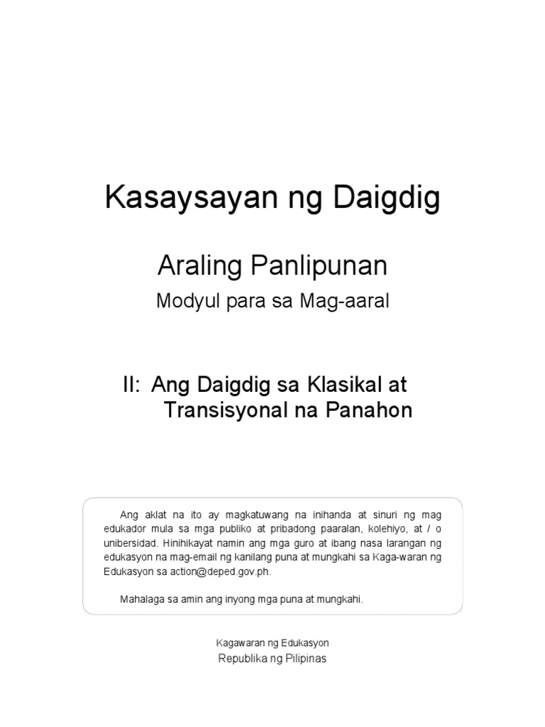 Kasaysayan Ng Daigdig Araling Panlipunan Pdf