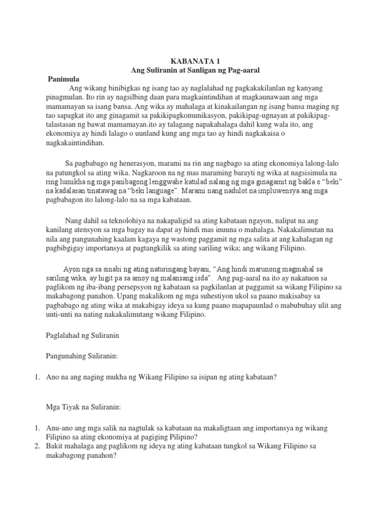 Sa katunayan hindi isyu kung alin ba talaga ang dapat na gamiting opisyal na wikang panturo sa mga paaralan. Malaki ba ang papel na ginagampanan ng modernisasyon upang 726 274 mapaunlad at maipalaganap ang wikang Filipino. May ibat ibang paraan upang mapangalagaan at mapahalagahan ang wikang pambansa na wikang Filipino.
