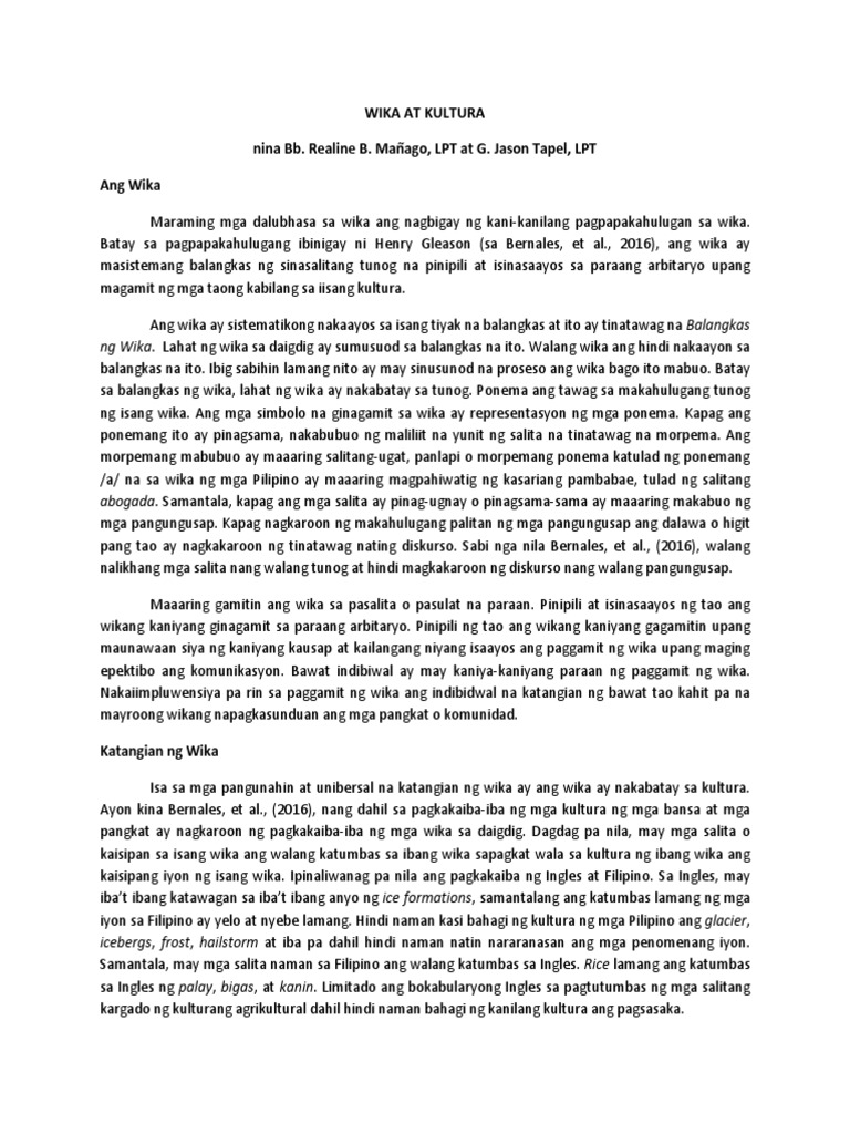 At dahil doon ay mas lumawak ang hangarin kong matuto pa hinggil sa mga aralin tungkol sa asignaturang Filipino at kung paano ko pa mas mapapabuti ang paggamit ng Wikang Filipino. Ang wika ay. Ang pagiging sangkot ng mga tao sa ganitong sistema ng paggamit at pgkakabuo ng wika ay tulong upang matukoy ang itinakda o hindi sa loob ng wikang ginagamit.