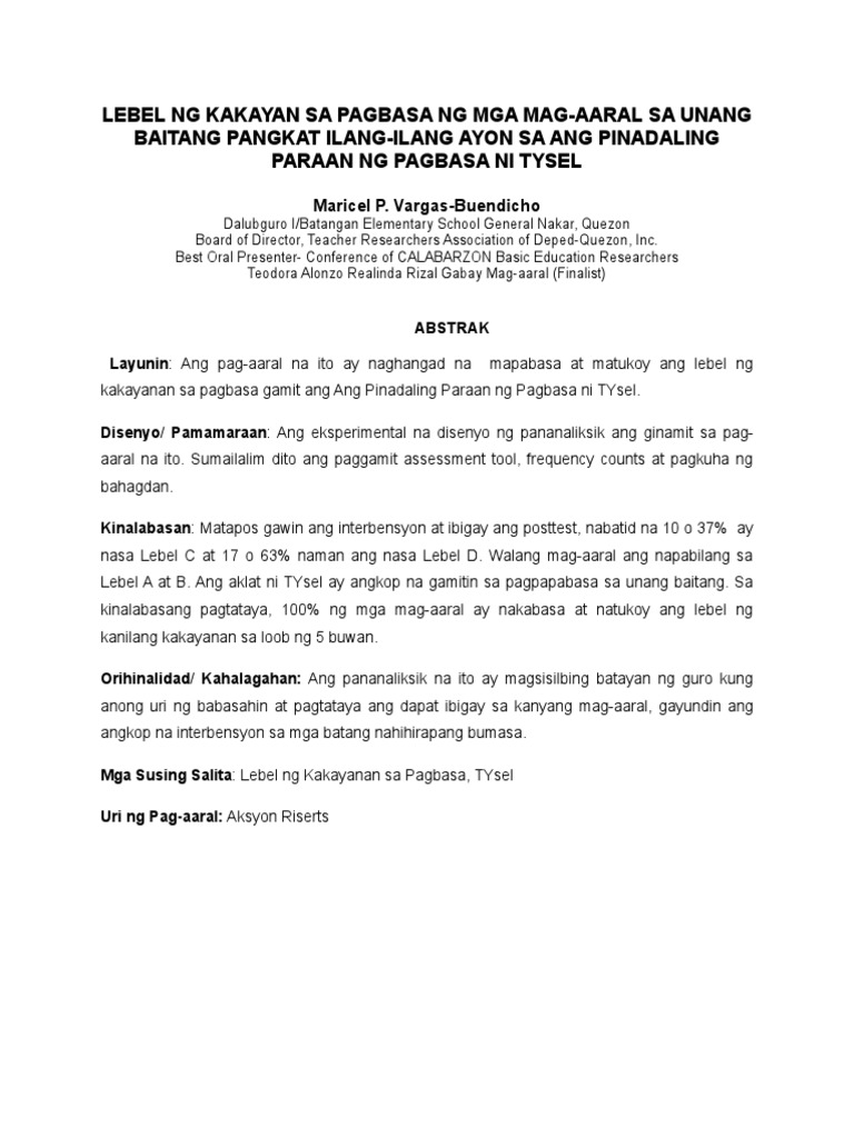 Lebel Ng Kakayanan Sa Pagbasa Ng Mga Mag