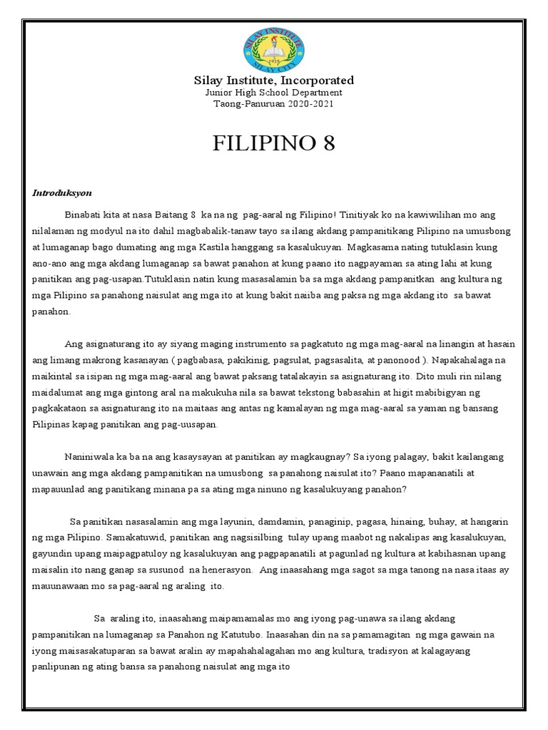 Filipino 8 Modyul 1 Unang Markahan Pdf
