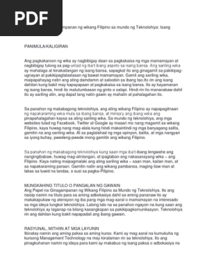Ang Papel Na Ginagampanan Ng Wikang Filipino Sa Mundo Ng Teknolohiya